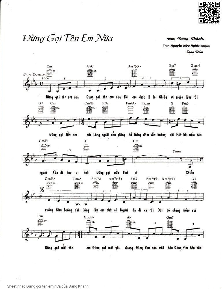 Đăng Khánh Đừng gọi tên em nữa đừng gọi tên em nữa [PDF] [Sheet] [Lyrics] [Mp4/Midi]