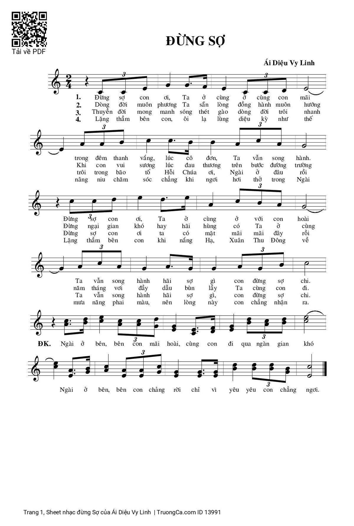 Ái Diệu Vy Linh Đừng sợ con ơi Ta ở cùng ở cùng con mãi [PDF] [Sheet] [Lyrics] [Mp4/Midi]