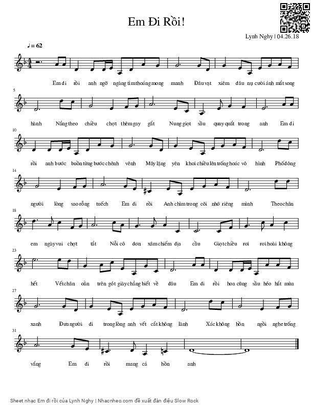 The Videos/audios Em đi rồi by Lynh Nghy were embed from Youtube, Musescore or the other 3rd links. Videos are subject to 3rd's copyright control and may be removed by YouTube's copyright rules and 3rd's policies or maybe included advertisements. If you cannot access to these songs, this mean that have been removed.