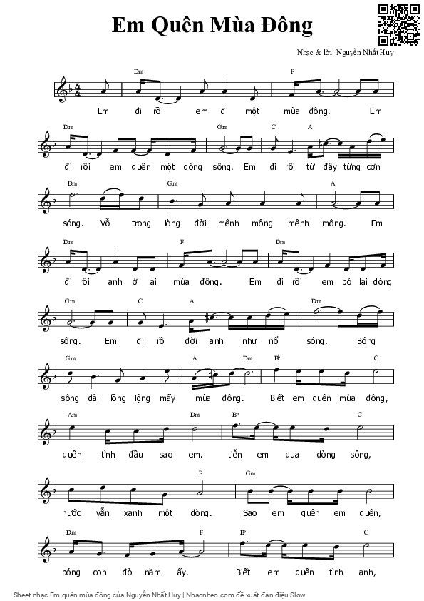Nguyễn Nhất Huy Em đi rồi em đi một mùa đông Em đi rồi [PDF] [Sheet] [Lyrics] [Mp4/Midi]