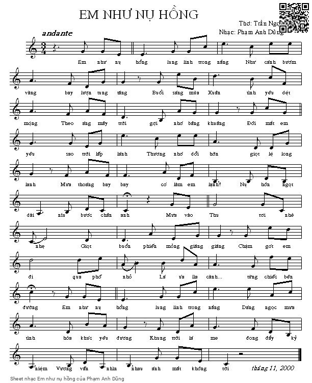 Transposition is the process of moving a song's melody and chords up or down in pitch by a constant interval. The direction of the transposition tool is indicated by a plus (+) sign for up and a minus (-) sign for down. Hover mouse over chords signs to see the chords chart of Em như nụ hồng song.