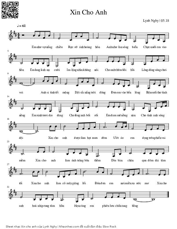 The Videos/audios Xin cho anh by Lynh Nghy were embed from Youtube, Musescore or the other 3rd links. Videos are subject to 3rd's copyright control and may be removed by YouTube's copyright rules and 3rd's policies or maybe included advertisements. If you cannot access to these songs, this mean that have been removed.