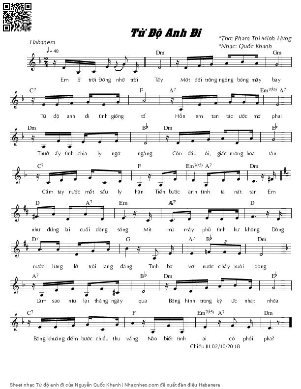 Nguyễn Quốc Khanh Em ở trời Đông nhớ trời Tây Một đời trông ngóng bóng mây bay [PDF] [Sheet] [Lyrics] [Mp4/Midi]