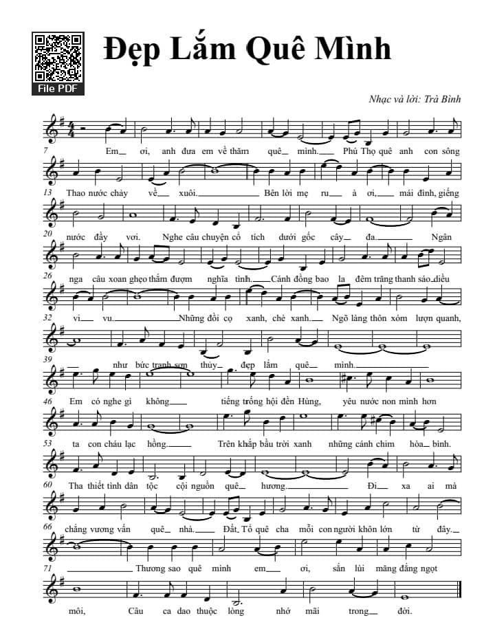 Trà Bình Em ơi anh đưa em về thăm quê mình Phú Thọ quê anh con sông Thao nước chảy về xuôi [PDF] [Sheet] [Lyrics] [Mp4/Midi]