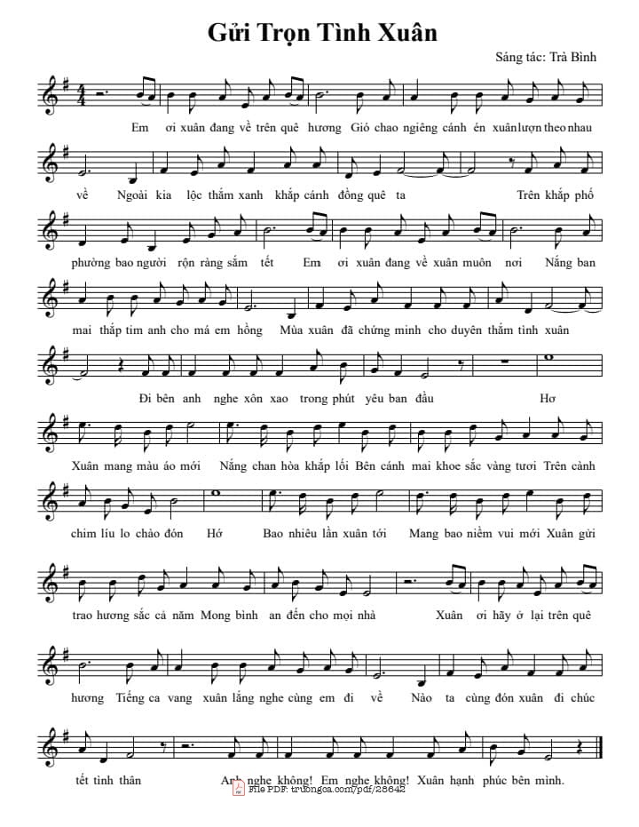 Trà Bình Em ơi xuân đang về trên quê hương Gió chao nghiêng cánh én xuân lượn theo nhau về [PDF] [Sheet] [Lyrics] [Mp4/Midi]