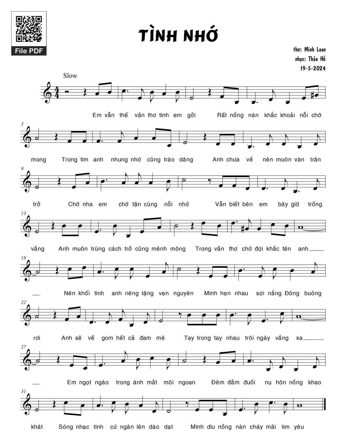 Thảo Hồ Em vẫn thế vần thơ tình em gởi Rất nồng nàn khắc khoải nỗi chờ mong [PDF] [Sheet] [Lyrics] [Mp4/Midi]