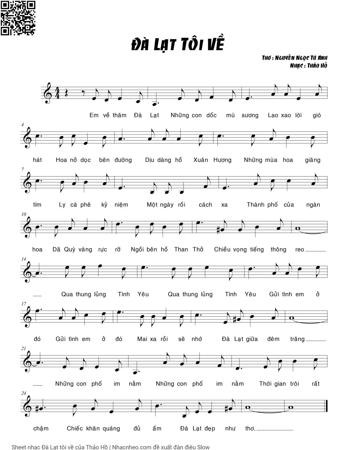 Thảo Hồ Em về thăm Đà Lạt Những con dốc mù sương [PDF] [Sheet] [Lyrics] [Mp4/Midi]