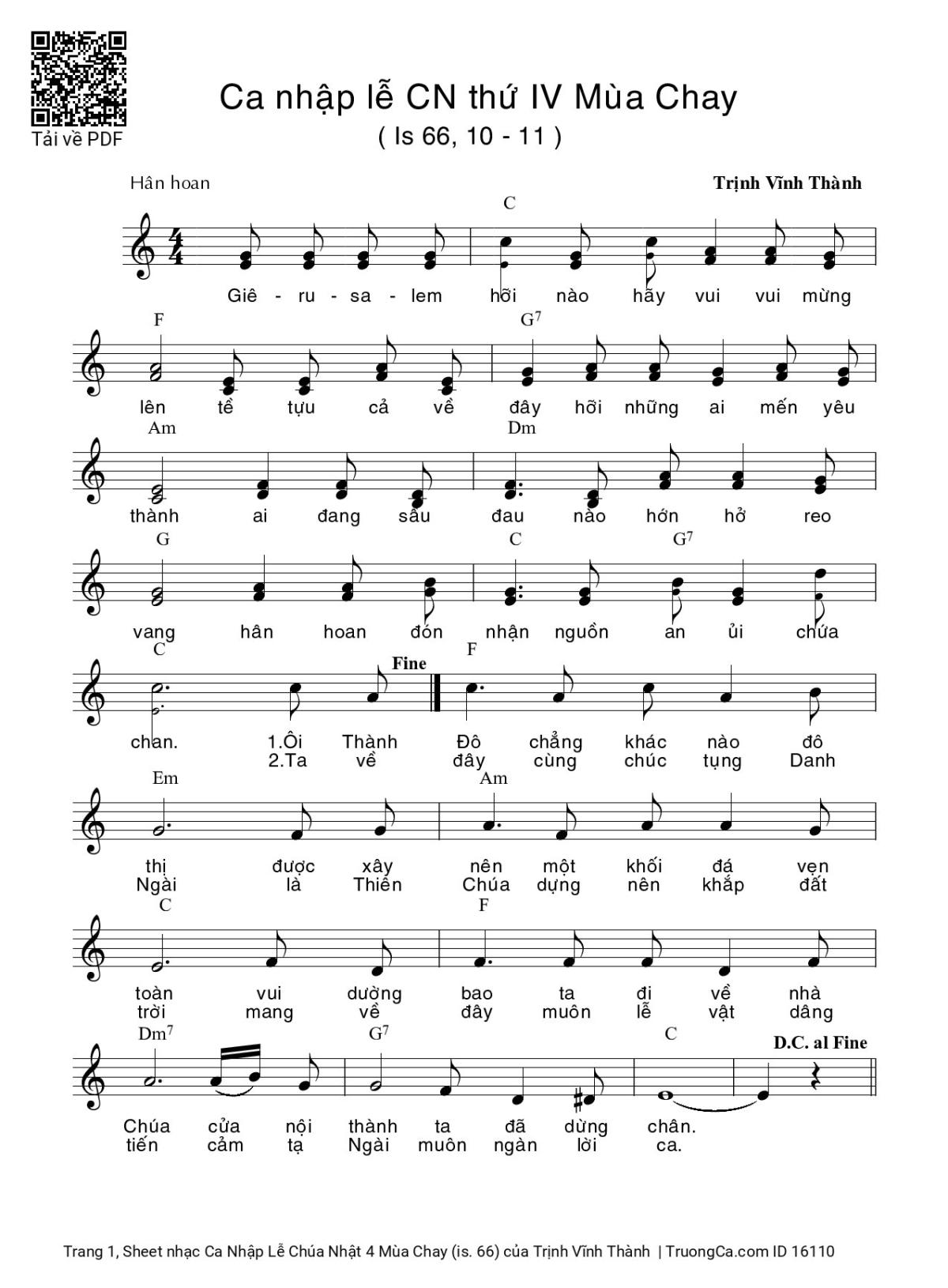 More similar sheets PDF Ca Nhập Lễ Chúa Nhật 4 Mùa Chay (is. 66):