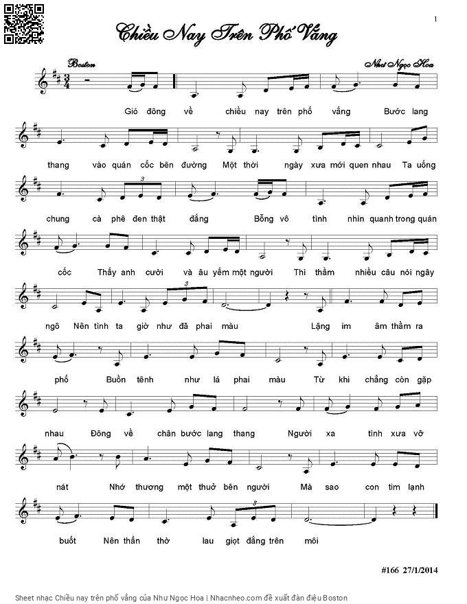 Như Ngọc Hoa Gió đông về chiều nay trên phố vắng [PDF] [Sheet] [Lyrics] [Mp4/Midi]