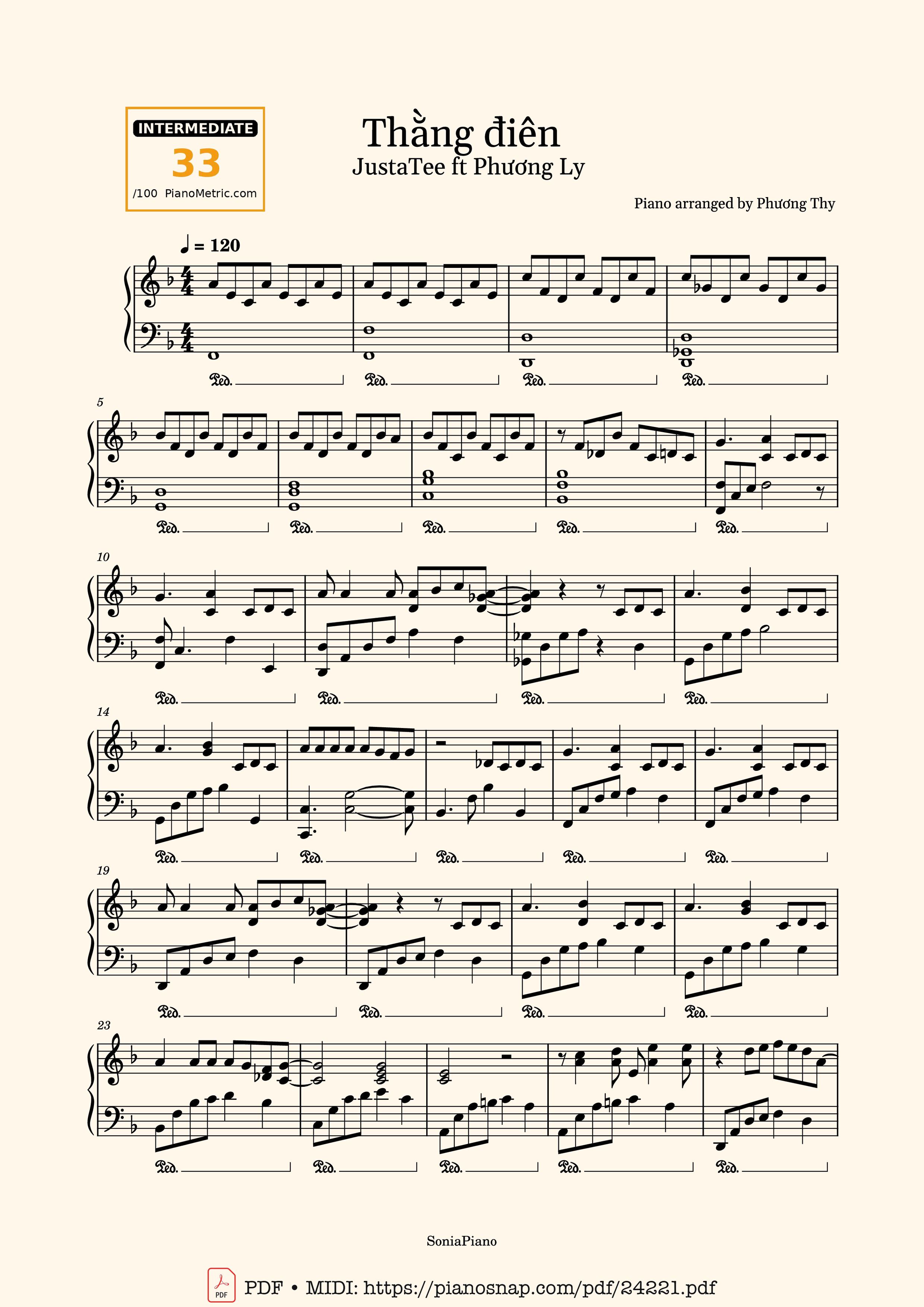 The Videos/audios Thằng điên Sheet Piano by Justatee were embed from Youtube, Musescore or the other 3rd links. Videos are subject to 3rd's copyright control and may be removed by YouTube's copyright rules and 3rd's policies or maybe included advertisements. If you cannot access to these videos/audios, this mean that have been removed.