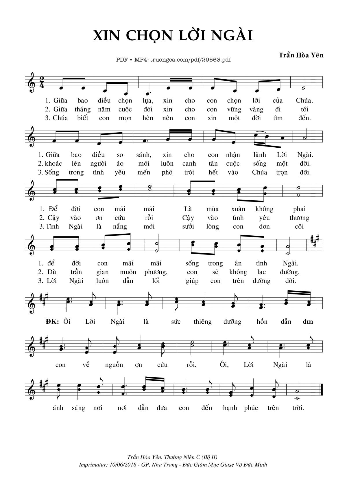 Trần Hòa Yên Giữa bao điều chọn lựa xin cho con chọn lời của Chúa [PDF] [Sheet] [Lyrics] [Mp4/Midi]