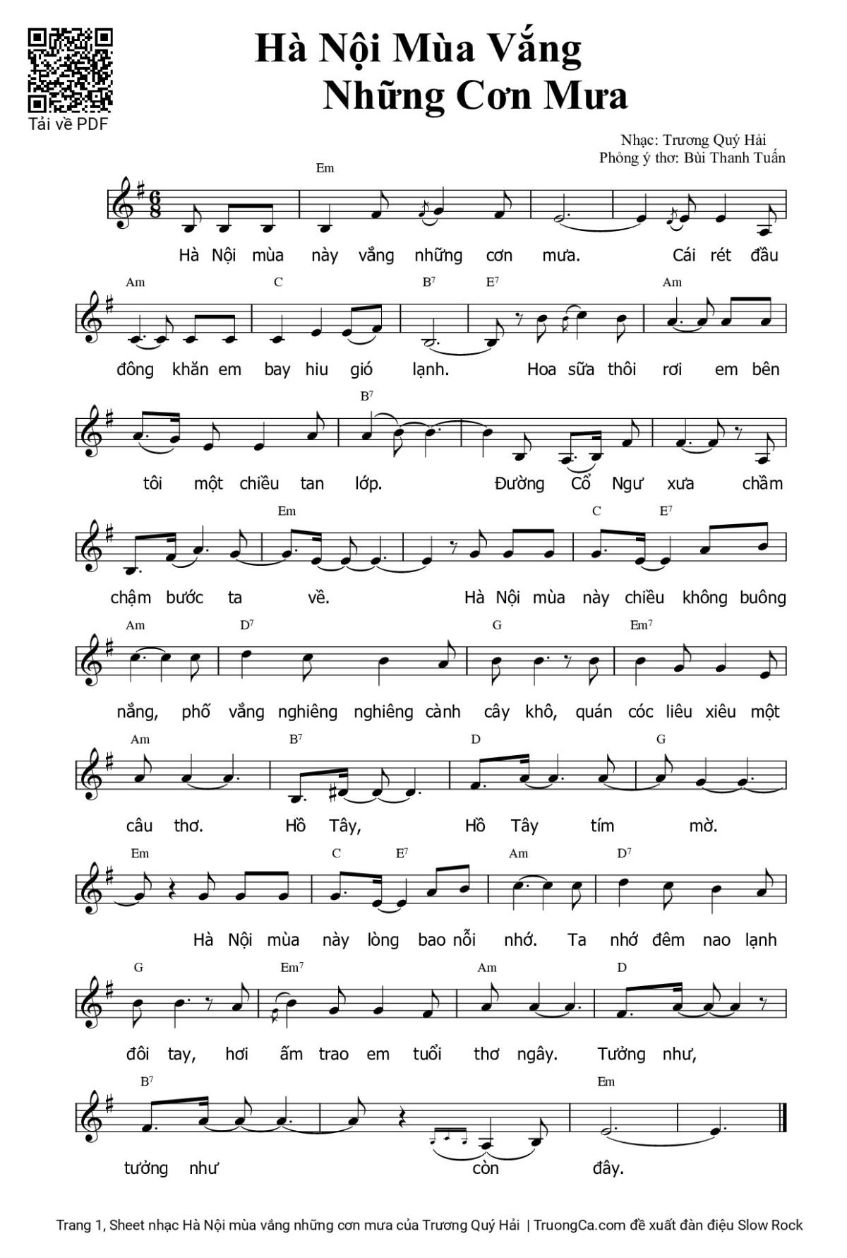 Trương Quý Hải Hà Nội mùa này vắng những cơn mưa Cái rét đầu đông khăn em bay hiu hiu gió lạnh [PDF] [Sheet] [Lyrics] [Mp4/Midi] [Story and comment]