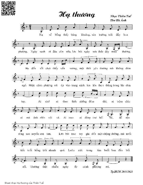 Thiên Tuế Hạ về bỗng thấy bâng khuâng Sân trường trải đầy hoa phượng [PDF] [Sheet] [Lyrics] [Mp4/Midi]
