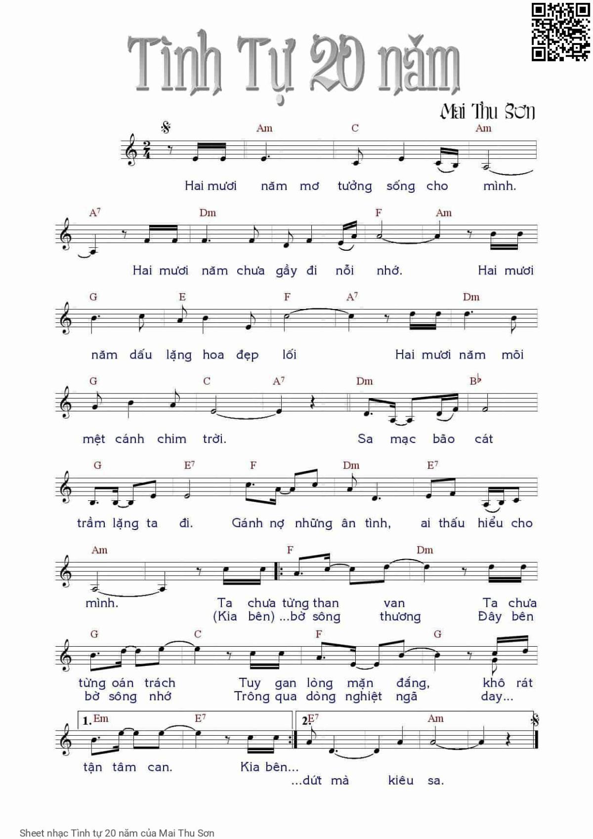 Mai Thu Sơn Hai mươi năm mơ tưởng sống cho mình Hai mươi năm chưa gầy đi nỗi nhớ [PDF] [Sheet] [Lyrics] [Mp4/Midi]