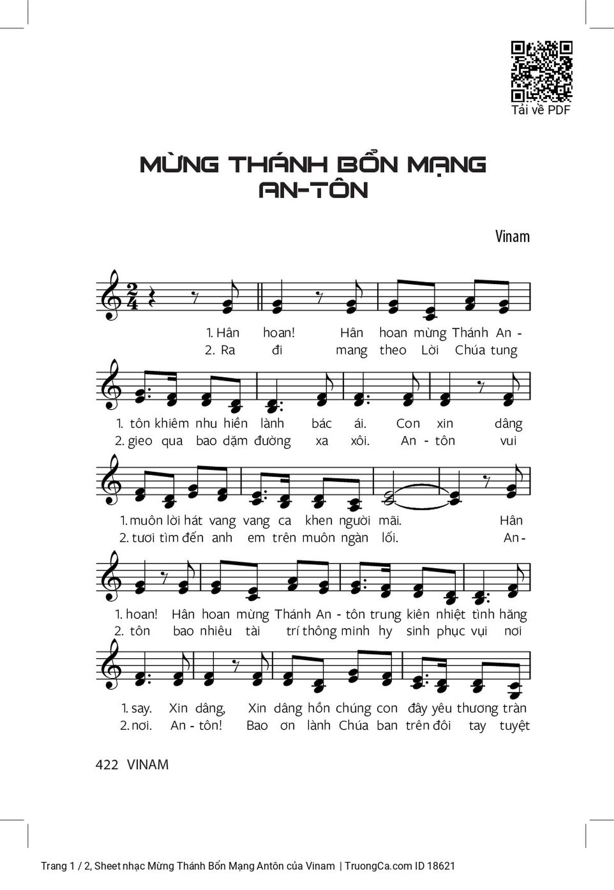 More similar sheets PDF Mừng Thánh Bổn Mạng Antôn:
