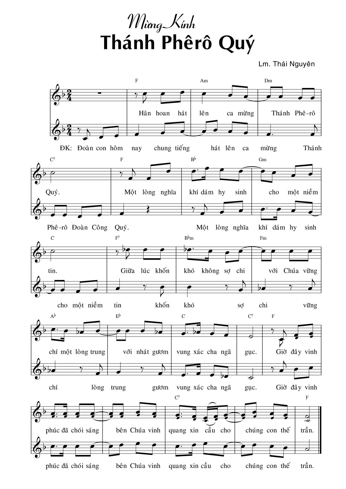Lm. Thái Nguyên Hân hoan hát lên ca mừng thánh Phê-rô Quý [PDF] [Sheet] [Lyrics] [Mp4/Midi]