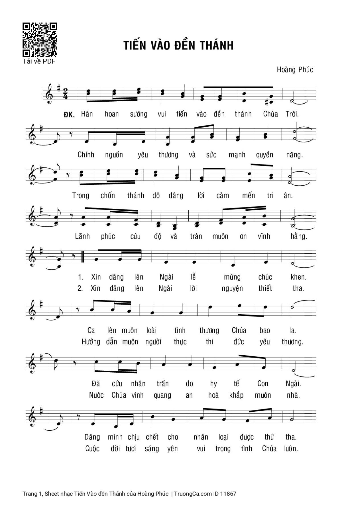 Điệp khúc. Hân hoan sướng vui tiến vào đền thánh Chúa Trời. Chính nguồn yêu thương và sức mạnh quyền năng. Trong chốn thánh đô dâng lời cảm mến tri ân. Lãnh phúc cứu độ và tràn muôn ơn vĩnh hằng.