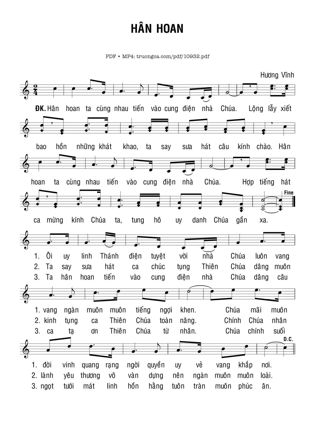 Hương Vĩnh Hân hoan ta cùng nhau tiến vào cung điện nhà Chúa [PDF] [Sheet] [Lyrics] [Mp4/Midi]