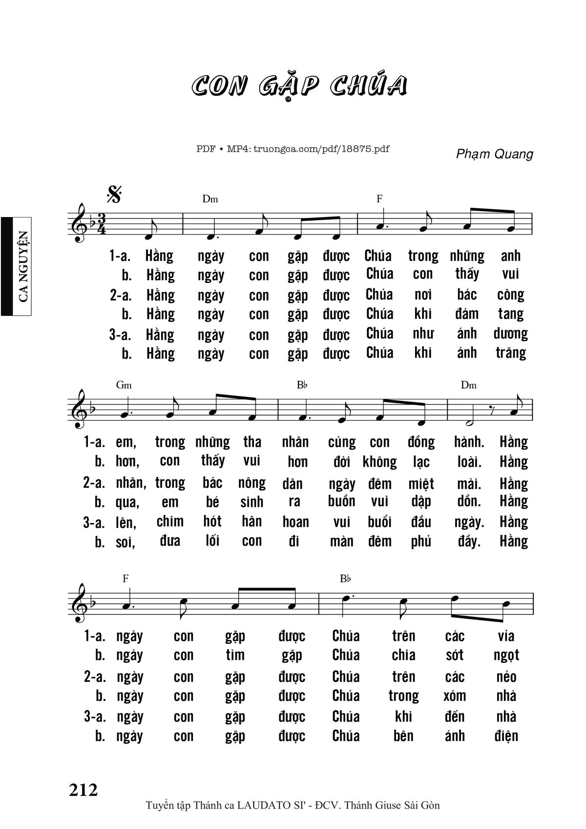 1b. Hằng ngày con gặp được Chúa con thấy vui hơn, con thấy vui hơn đời không lạc loài. Hằng ngày con tìm gặp Chúa chia sớt ngọt bùi san sẻ áo cơm sưởi ấm lòng người.