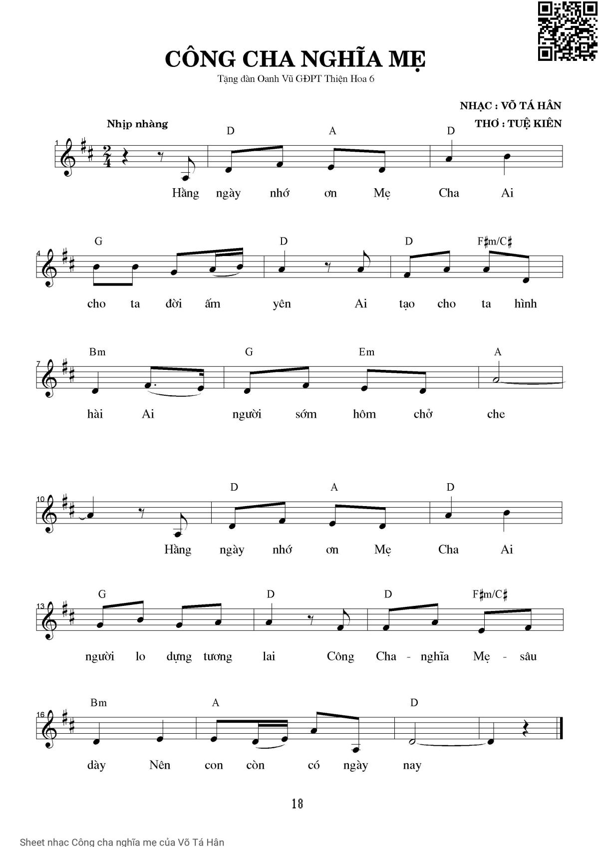 Võ Tá Hân Hằng ngày nhớ ơn mẹ cha Ai cho ta đời ấm yên [PDF] [Sheet] [Lyrics] [Mp4/Midi]