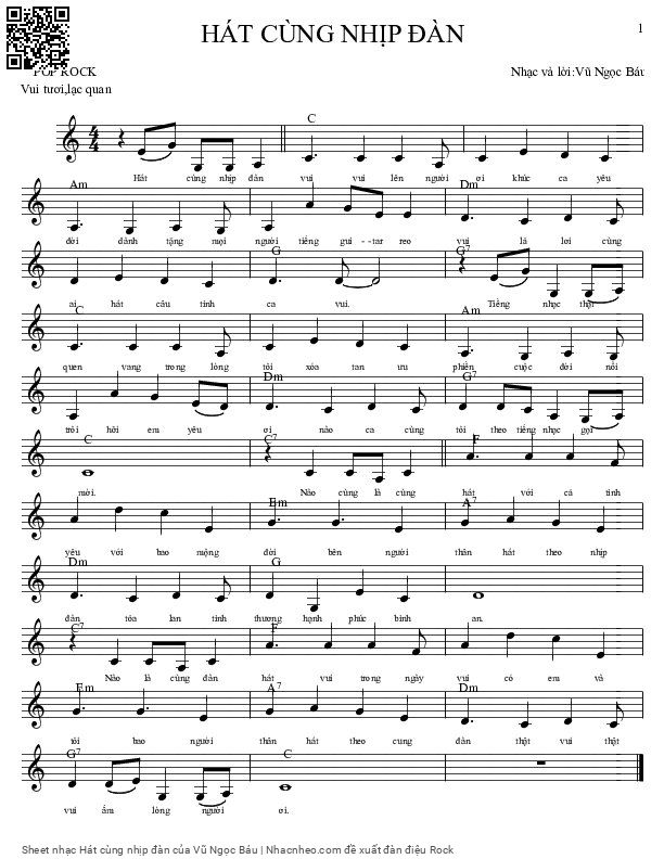 Vũ Ngọc Báu Hát cùng nhịp đàn vui vui lên người ơi [PDF] [Sheet] [Lyrics] [Mp4/Midi]