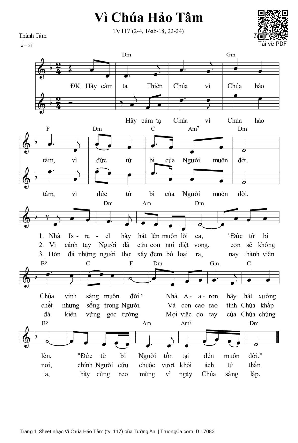 More similar sheets PDF Vì Chúa Hảo Tâm (tv. 117):