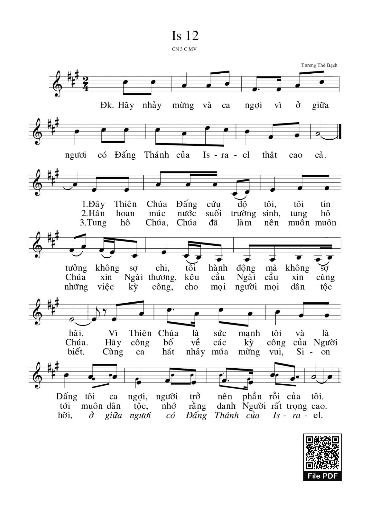 Trương Thế Bạch Hãy nhảy mừng và ca ngợi vì ở giữa ngươi có Đấng Thánh của Israel thật cao cả [PDF] [Sheet] [Lyrics] [Mp4/Midi]