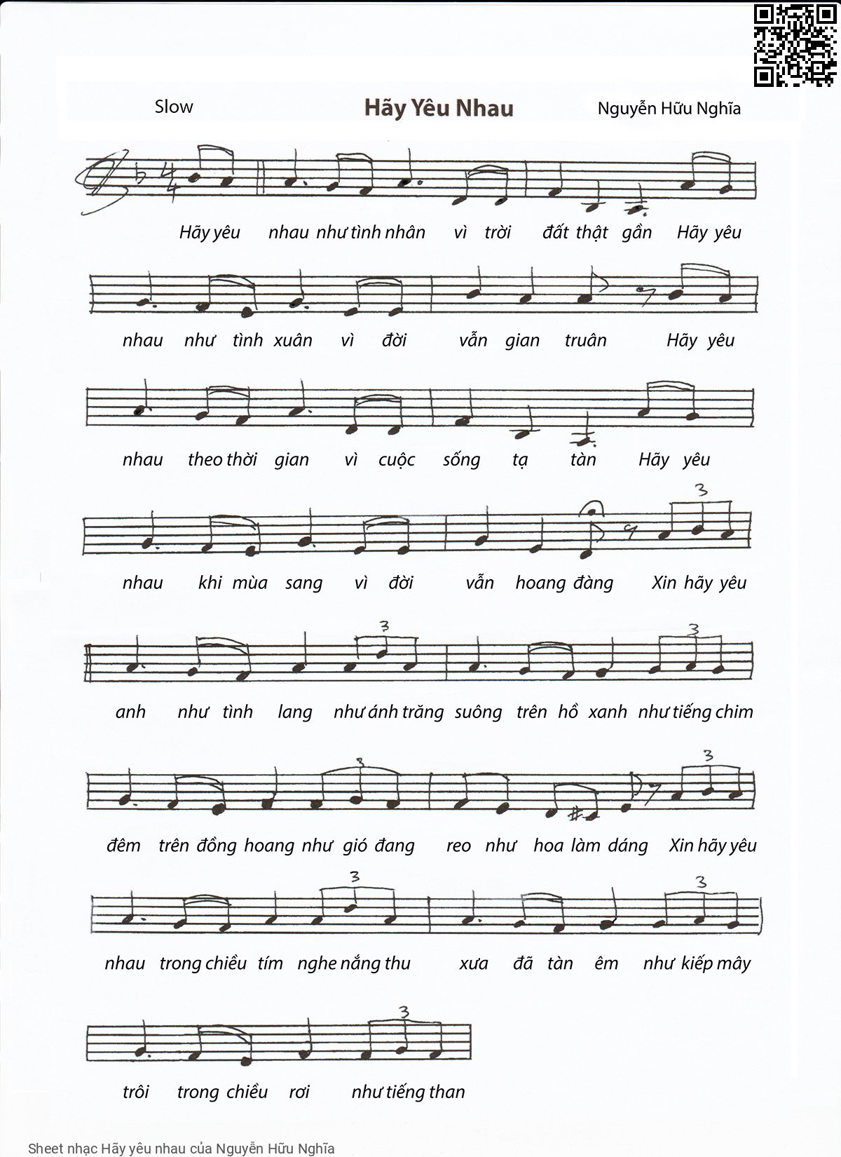 Nguyễn Hữu Nghĩa Hãy yêu nhau như tình nhân vì trời đất thật gần [PDF] [Sheet] [Lyrics] [Mp4/Midi]