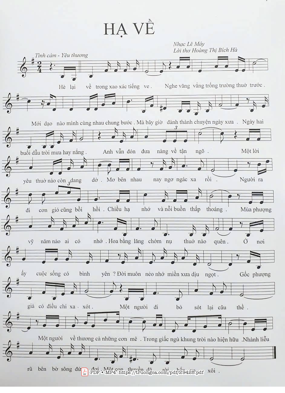 Lê Máy Hè lại về trong xao xác tiếng ve Nghe văng vẳng trống tan trường thuở trước [PDF] [Sheet] [Lyrics] [Mp4/Midi]