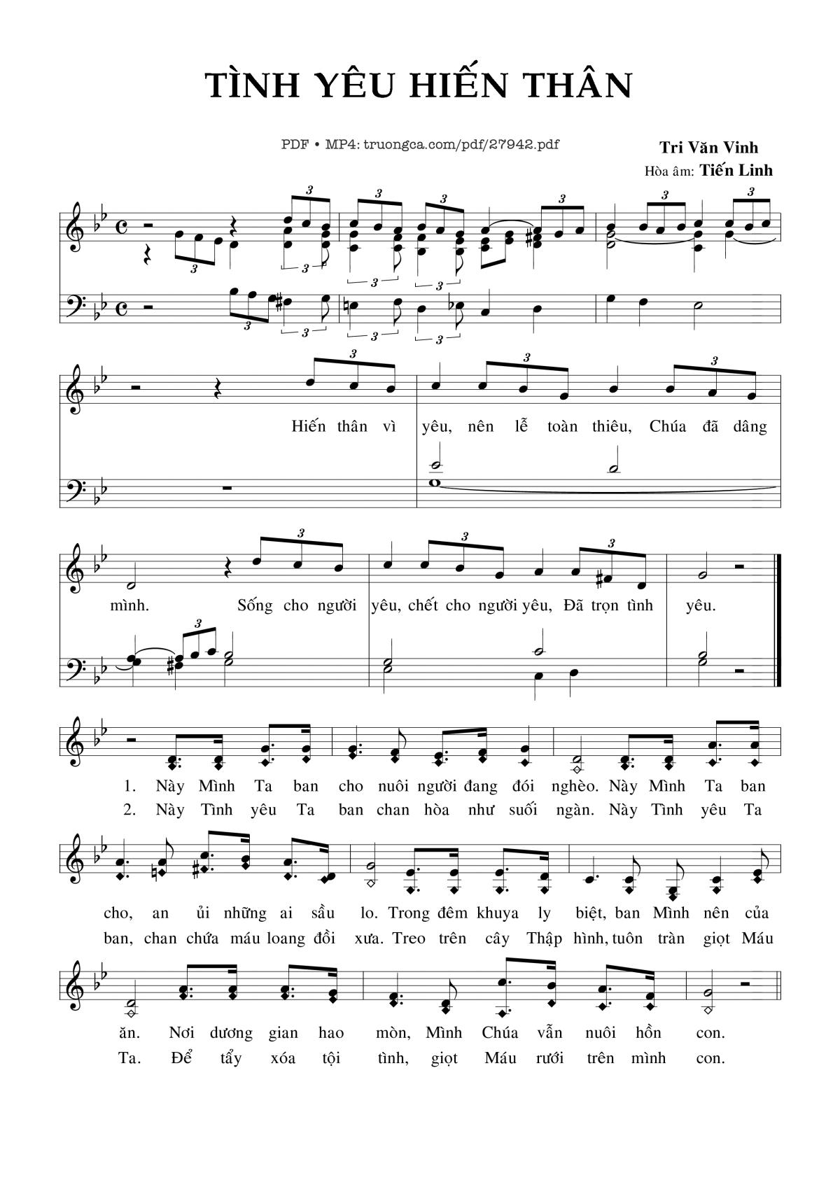 Tri Văn Vinh Hiến thân vì yêu nên lễ toàn thiêu Chúa đã dâng mình sống cho người yêu [PDF] [Sheet] [Lyrics] [Mp4/Midi]