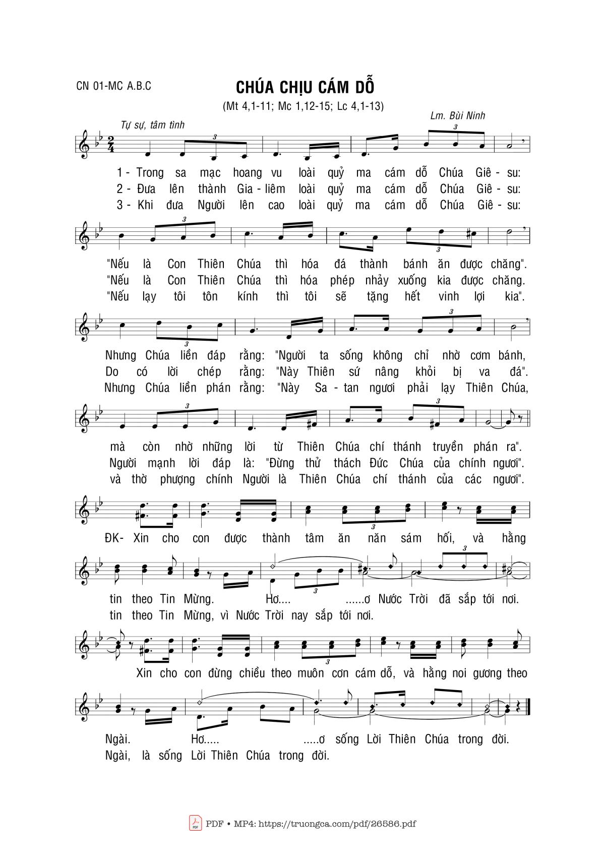 Bùi Ninh Hiệp Lễ Chúa Nhật C Mùa Chay Trong sa mạc hoang vu loài quỷ ma cám dỗ Chúa Giêsu [PDF] [Sheet] [Lyrics] [Mp4/Midi]