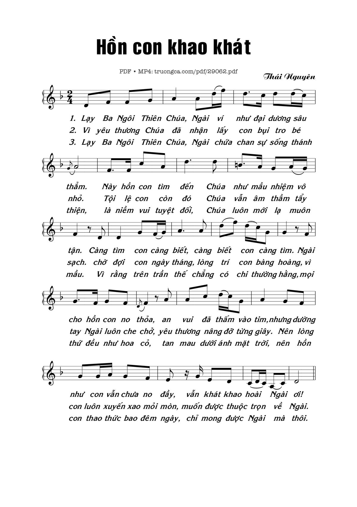 Thái Nguyên Hiệp Lễ Lễ Chúa Ba Ngôi Lạy Ba Ngôi Thiên Chúa Ngài ví như đại dương sâu thẳm [PDF] [Sheet] [Lyrics] [Mp4/Midi]