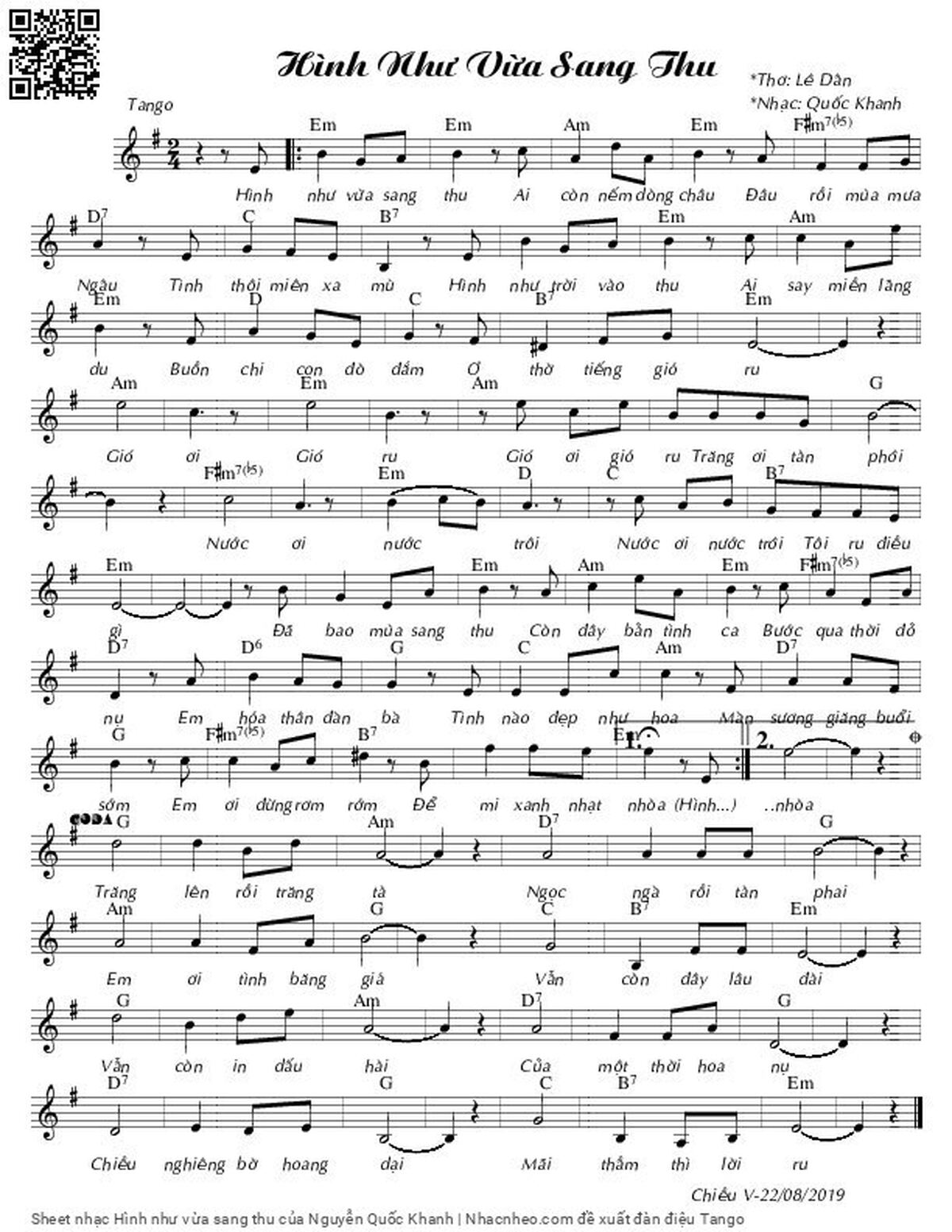 Nguyễn Quốc Khanh Hình như vừa sang thu Ai còn nếm dòng châu [PDF] [Sheet] [Lyrics] [Mp4/Midi]