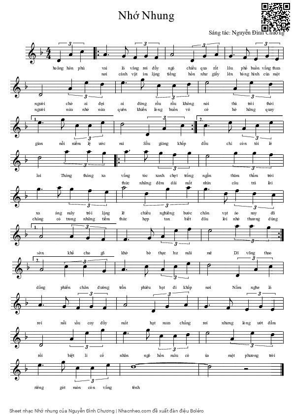 The Videos/audios Nhớ nhung by Nguyễn Đình Chương were embed from Youtube, Musescore or the other 3rd links. Videos are subject to 3rd's copyright control and may be removed by YouTube's copyright rules and 3rd's policies or maybe included advertisements. If you cannot access to these songs, this mean that have been removed.