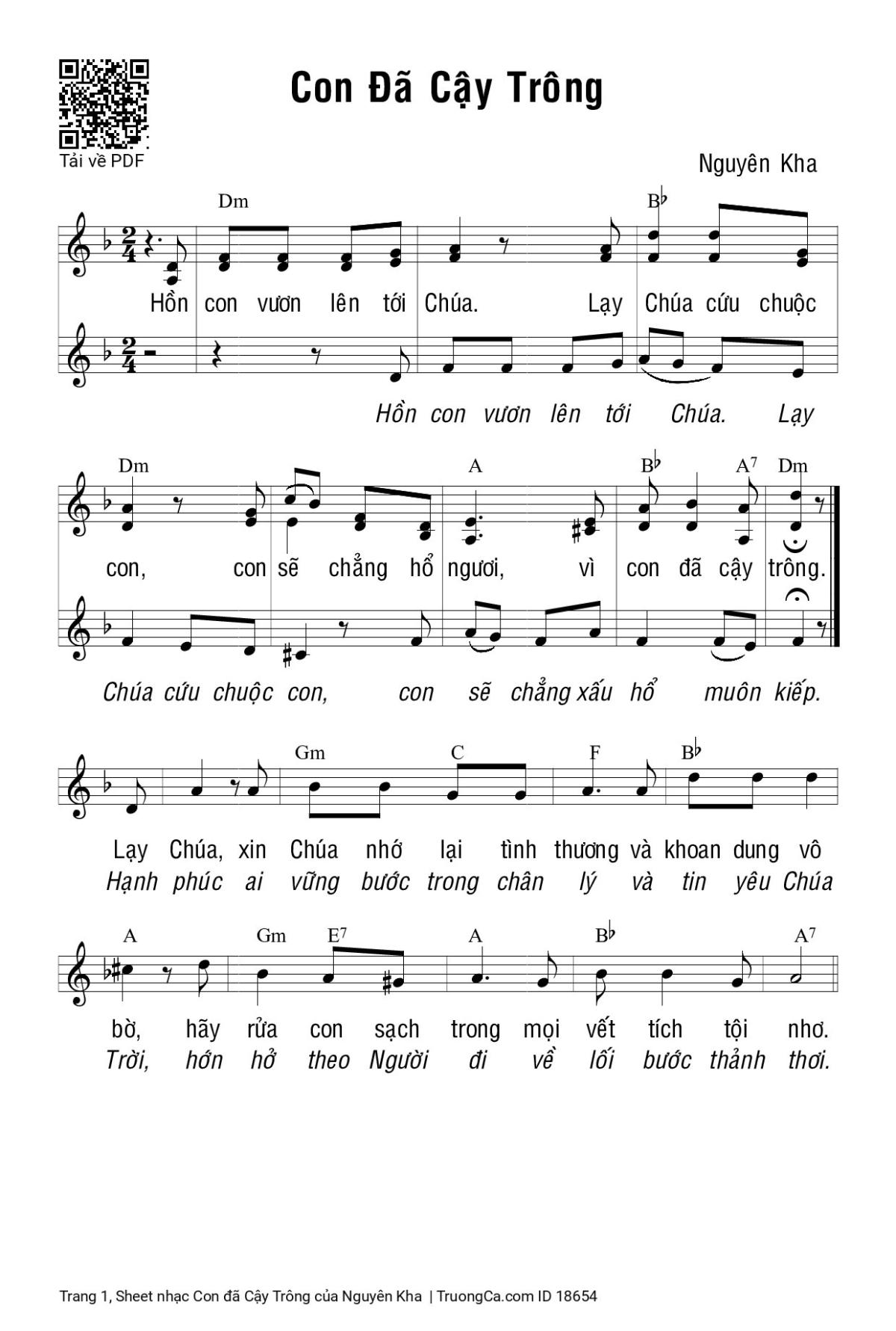 Transposition is the process of moving a song's melody and chords up or down in pitch by a constant interval. The direction of the transposition tool is indicated by a plus (+) sign for up and a minus (-) sign for down. Hover mouse over chords signs to see the chords chart of Con đã Cậy Trông song.