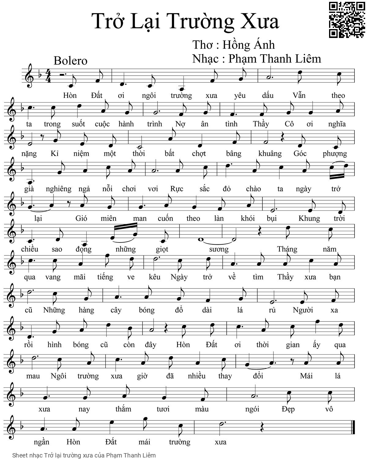 Phạm Thanh Liêm Hòn Đất ơi ngôi trường xưa yêu dấu Vẫn theo ta trong suốt cuộc hành trình [PDF] [Sheet] [Lyrics] [Mp4/Midi]