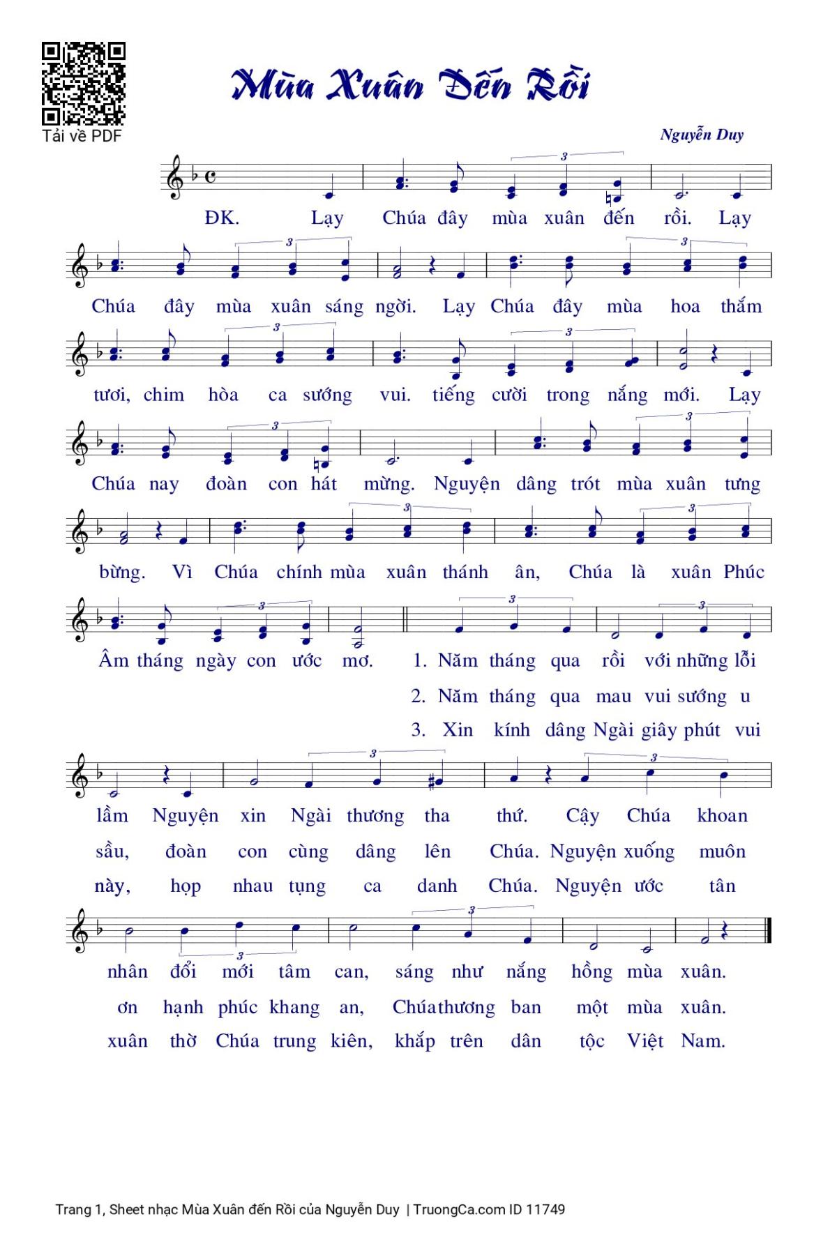 Nguyễn Duy ÐK Lạy Chúa đây mùa xuân đến rồi Lạy Chúa đây mùa xuân sáng ngời [PDF] [Sheet] [Lyrics] [Mp4/Midi]