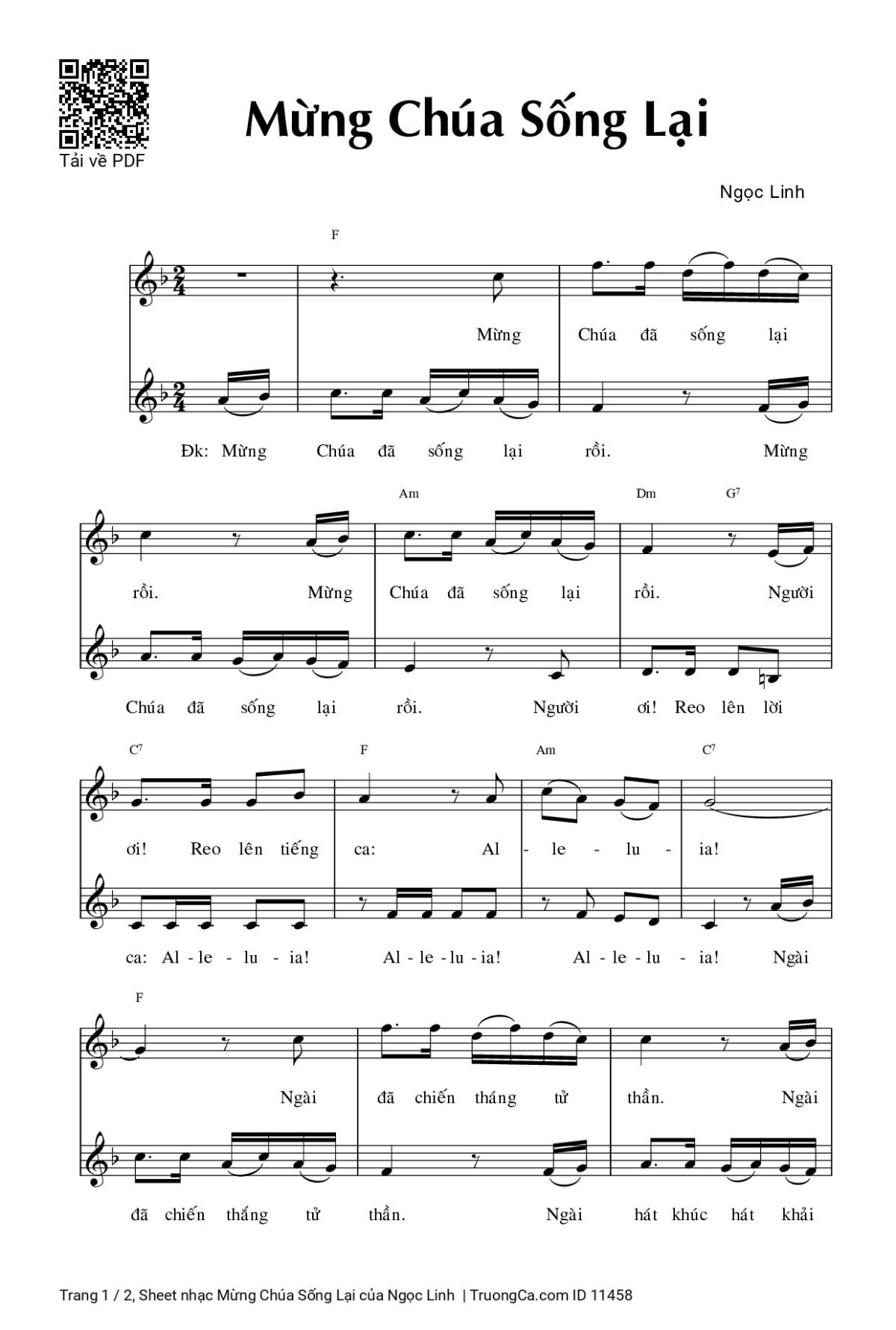 Ngọc Linh ÐK Mừng Chúa đã sống lại Mừng Chúa đã sống lại [PDF] [Sheet] [Lyrics] [Mp4/Midi]