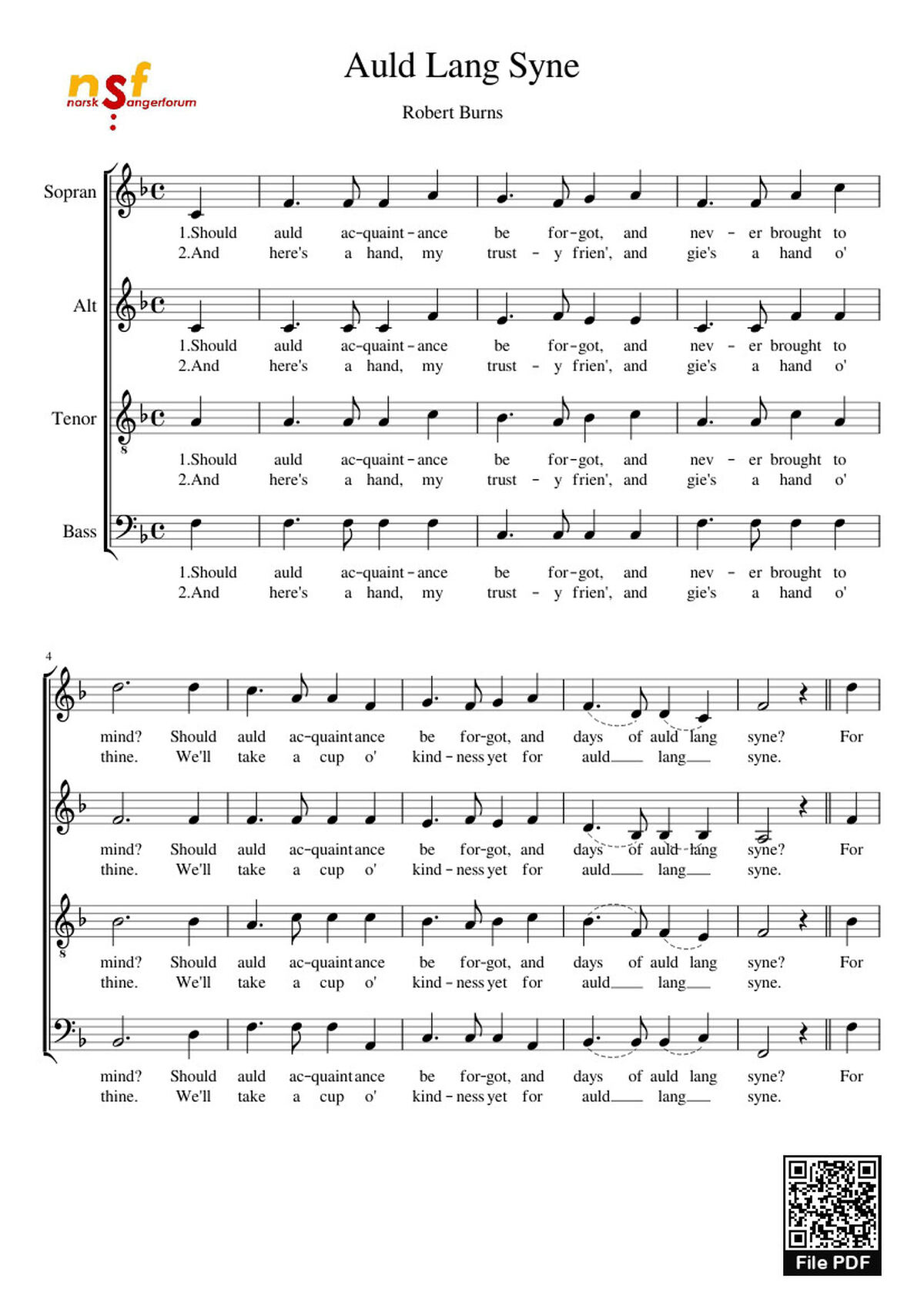 The Videos/audios Auld Lang Syne (SATB) by Sangerforum were embed from Youtube, Musescore or the other 3rd links. Videos are subject to 3rd's copyright control and may be removed by YouTube's copyright rules and 3rd's policies or maybe included advertisements. If you cannot access to these songs, this mean that have been removed.