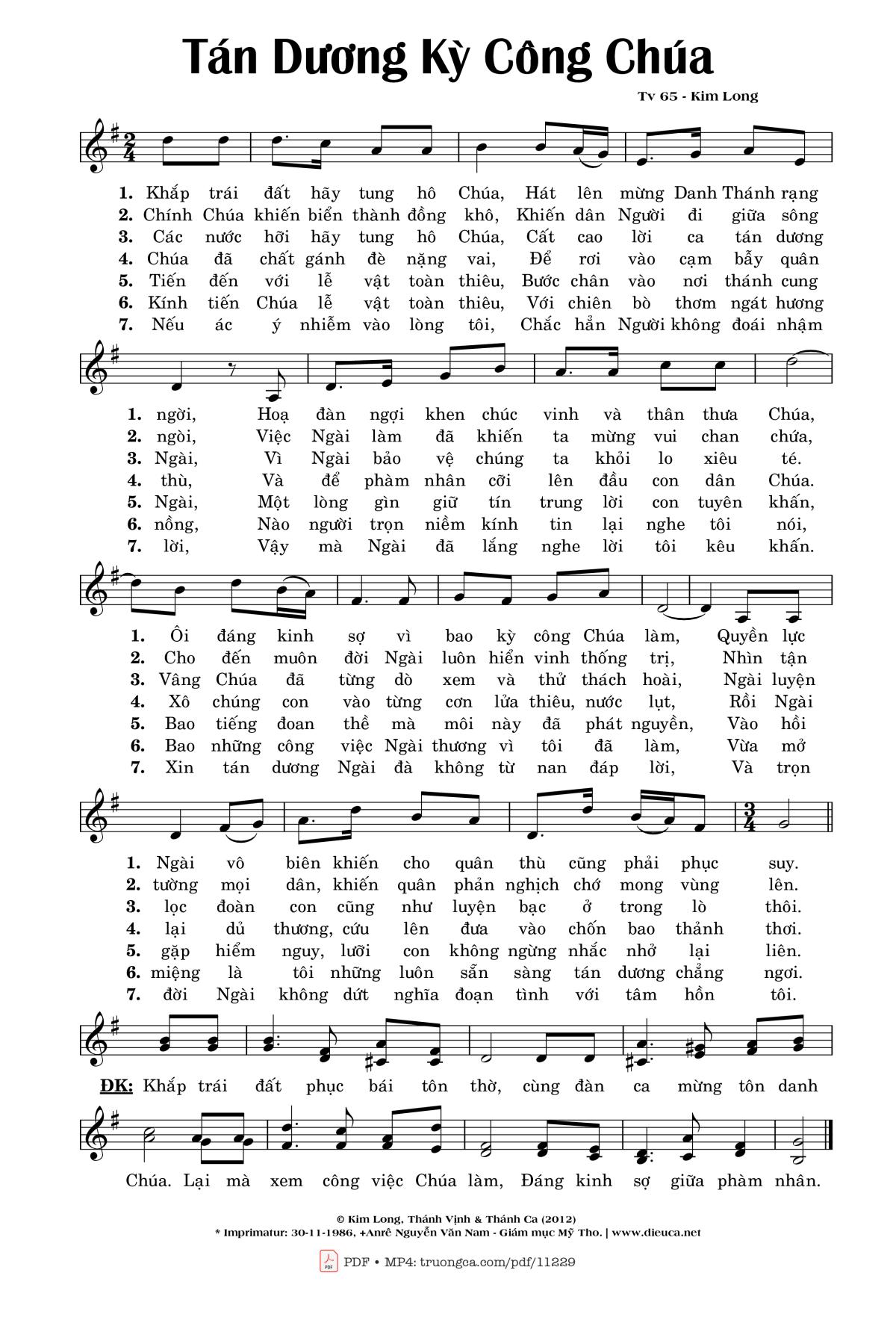 More similar sheets PDF Thánh Vịnh 65, Tán Dương Kỳ Công Chúa: