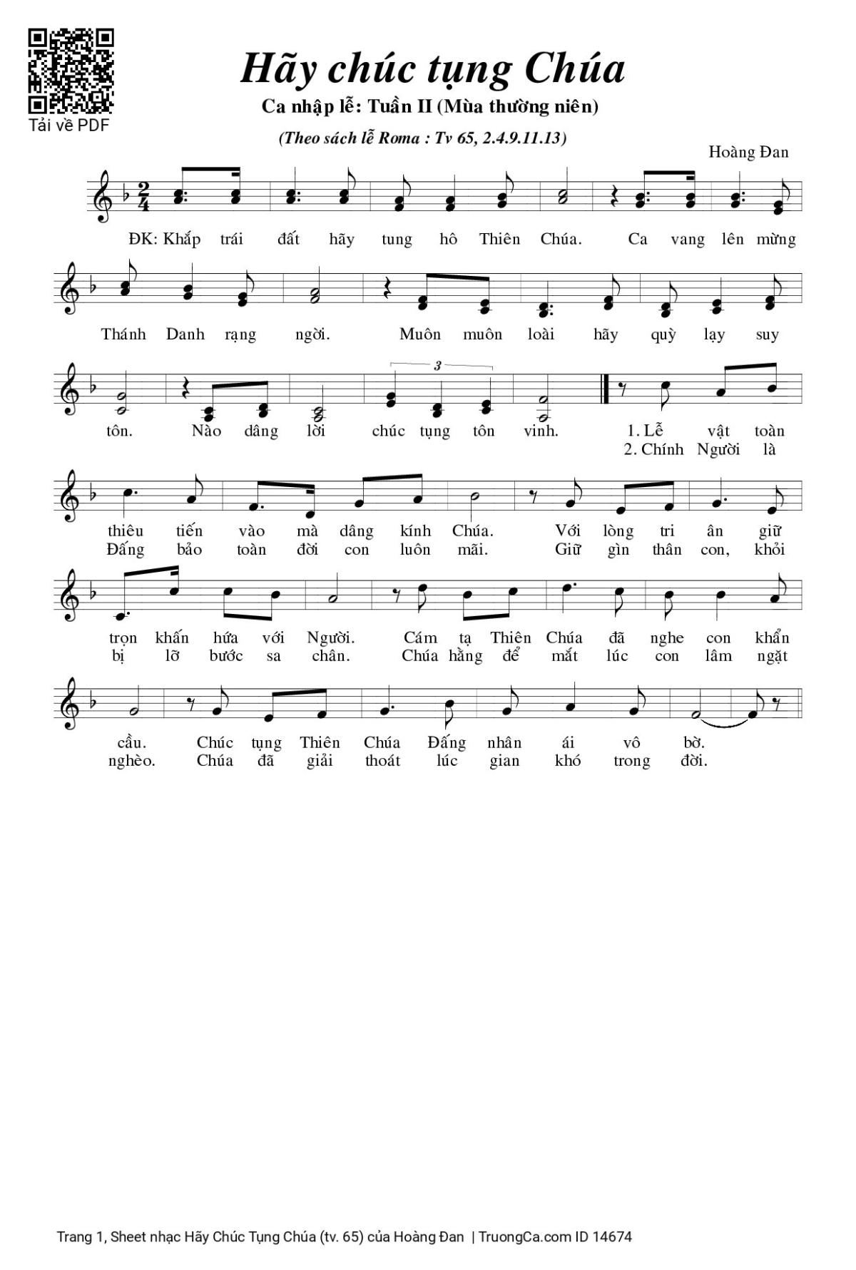 More similar sheets PDF Hãy Chúc Tụng Chúa (tv. 65):
