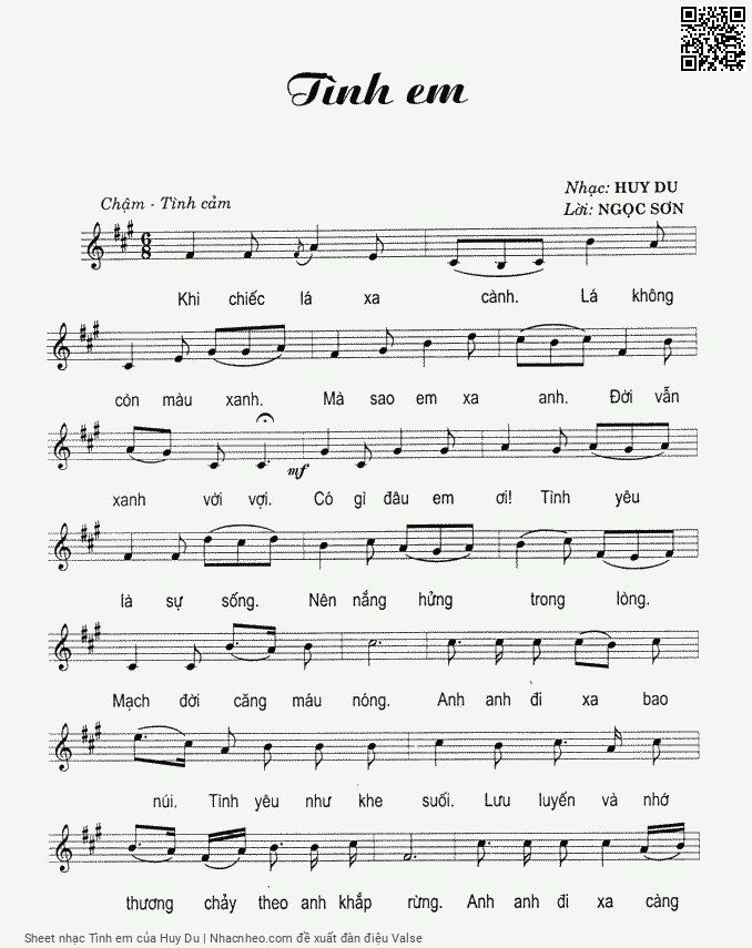 Huy Du Khi chiếc lá xa cành Lá không còn màu xanh [PDF] [Sheet] [Lyrics] [Mp4/Midi]