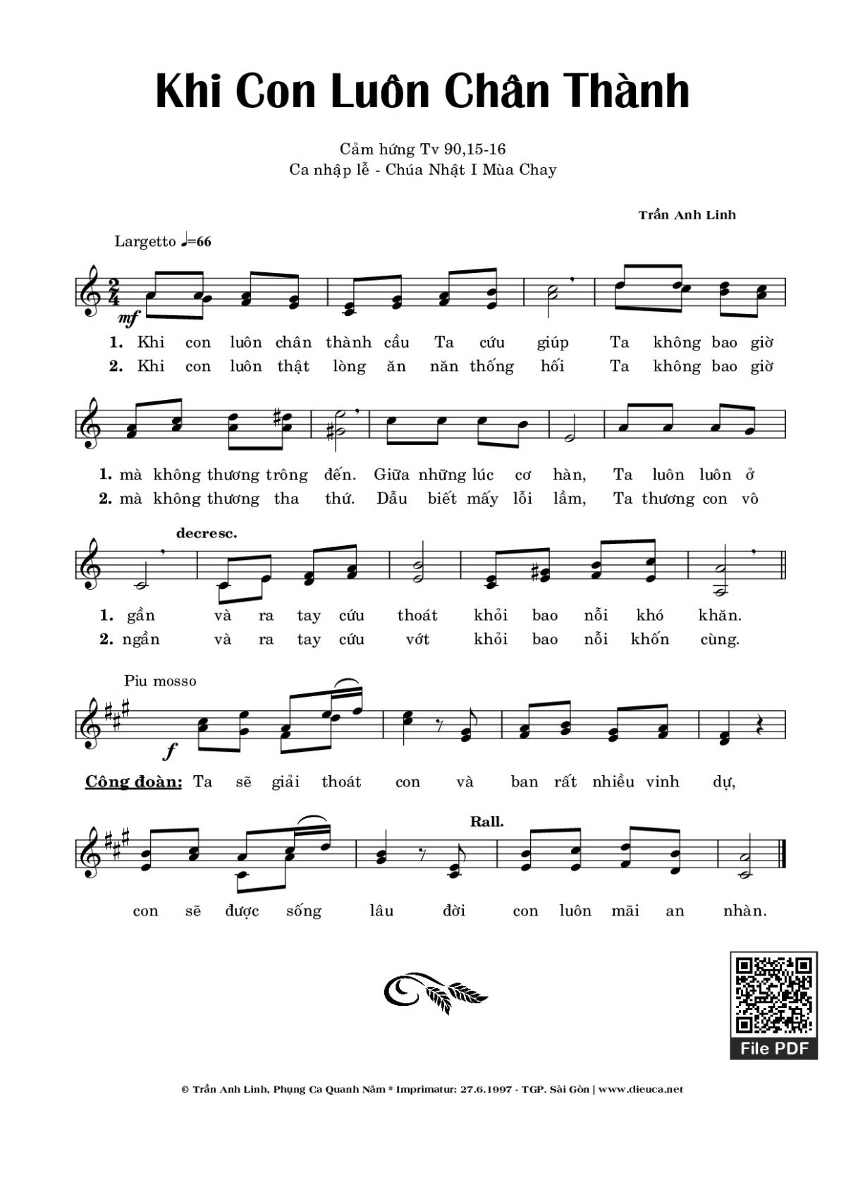Trần Anh Linh Khi con luôn chân thành cầu Ta cứu giúp Ta không bao giờ mà không thương trông đến [PDF] [Sheet] [Lyrics] [Mp4/Midi]