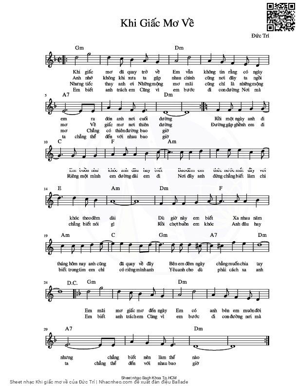 Đức Trí Khi giấc mơ đã quay trở về Em vẫn không không tin rằng [PDF] [Sheet] [Lyrics] [Mp4/Midi]