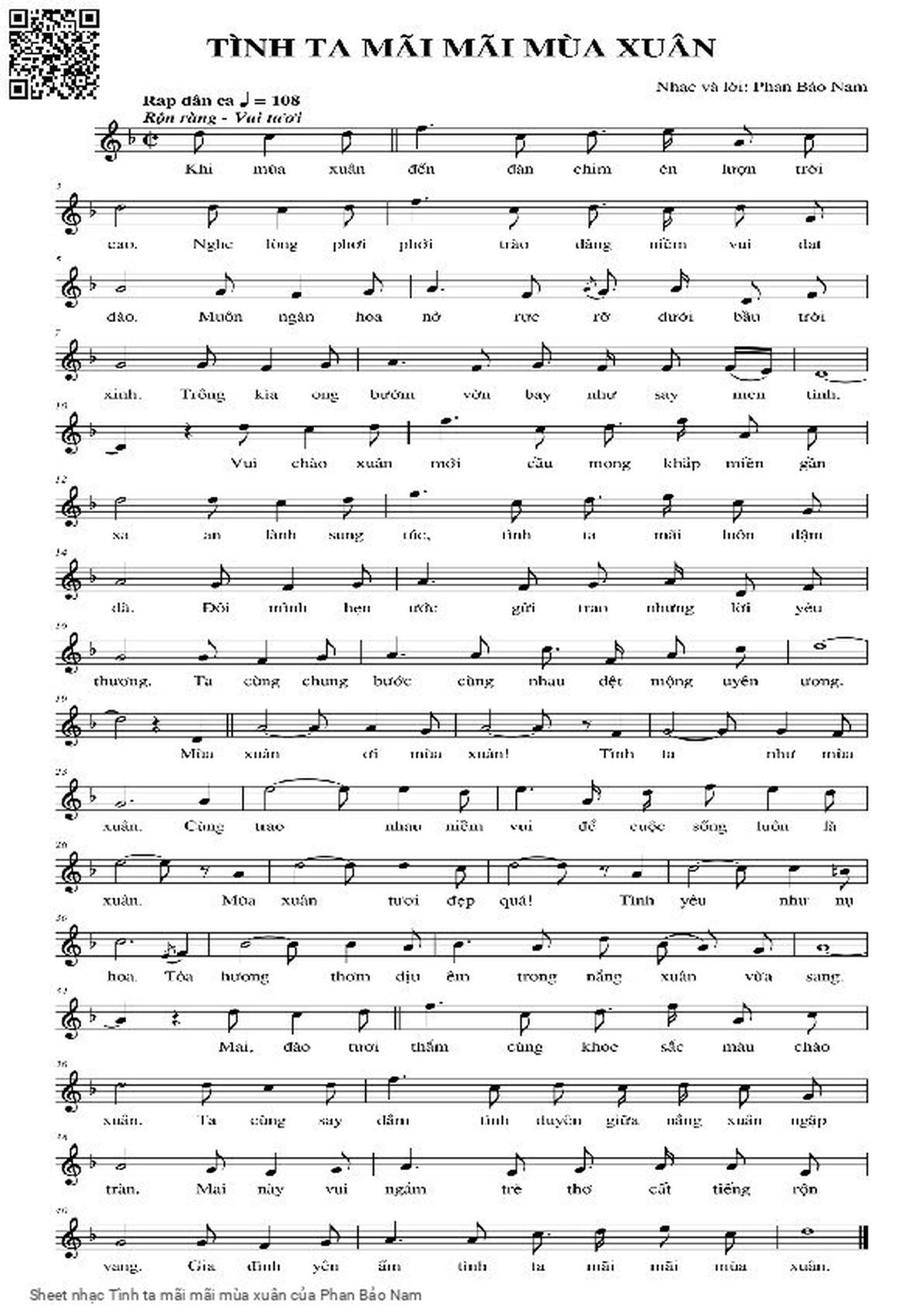 Phan Bảo Nam Khi mùa xuân đến đàn chim én lượn trời cao [PDF] [Sheet] [Lyrics] [Mp4/Midi]