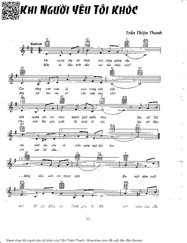 Trần Thiện Thanh Khi người yêu tôi khóc trời cũng giăng sầu [PDF] [Sheet] [Lyrics] [Mp4/Midi]