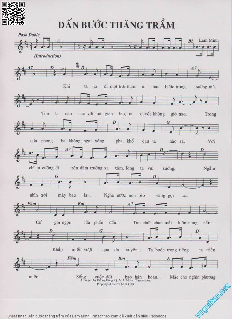 Transposition is the process of moving a song's melody and chords up or down in pitch by a constant interval. The direction of the transposition tool is indicated by a plus (+) sign for up and a minus (-) sign for down. Hover mouse over chords signs to see the chords chart of Dấn bước thăng trầm song.