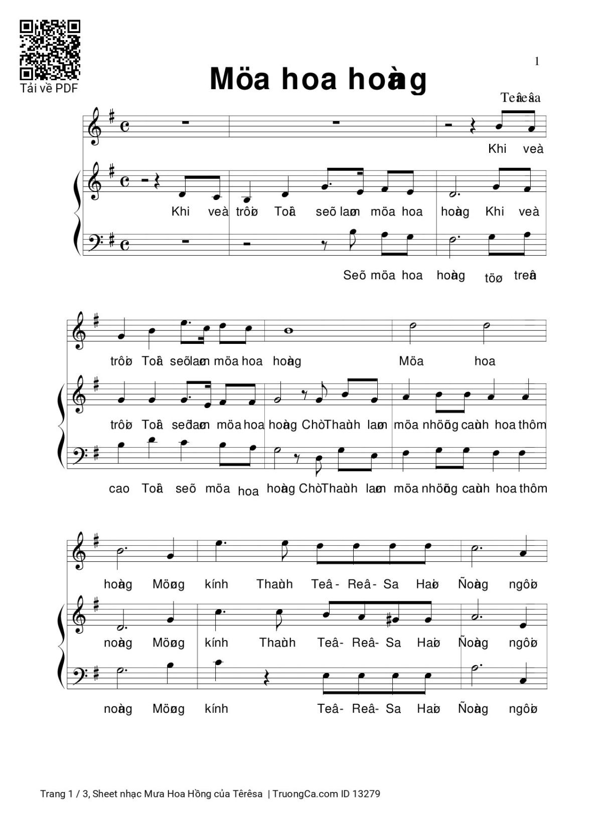 Điệp khúc. Khi về trời tôi sẽ làm mưa hoa hồng. Khi về trời tôi sẽ làm mưa hoa hồng. Mừng kính Thánh Tê-rê-sa Hài Đồng, ngời sáng đức phó thác cậy trông. Tình yêu luôn như hoa thắm nồng. Đã hứa về trời sẽ làm mưa hoa hồng.