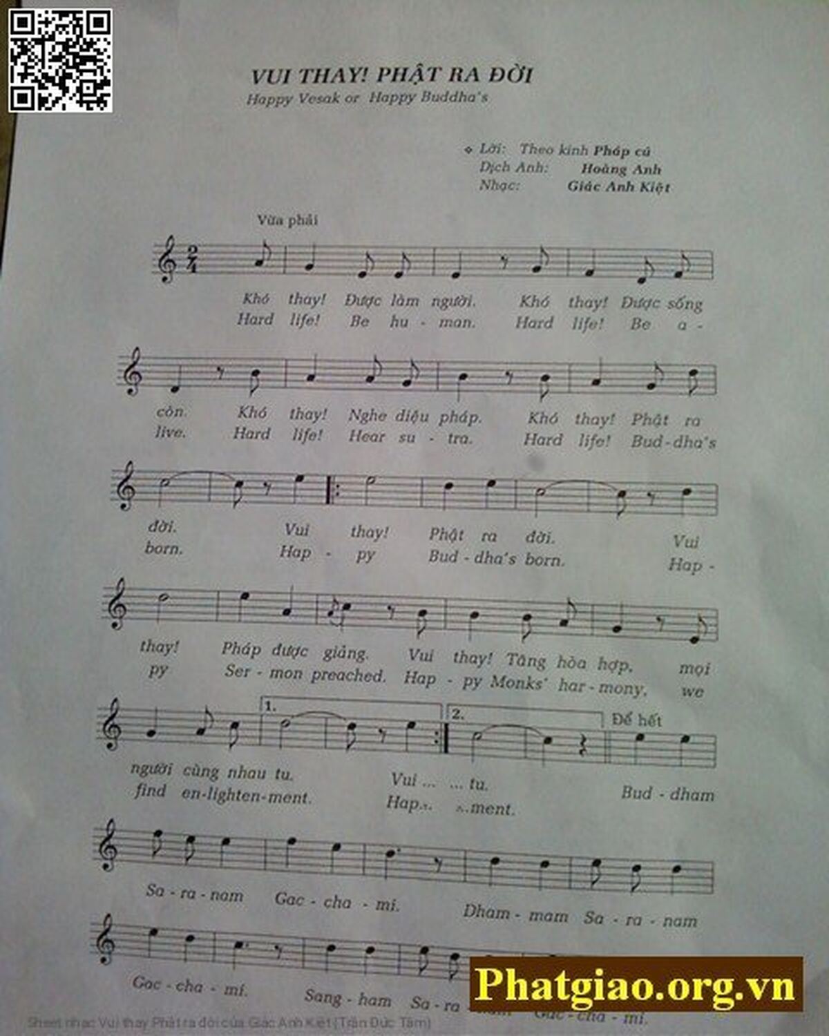 The Videos/audios Vui thay Phật ra đời by Giác Anh Kiệt (Trần Đức Tâm) were embed from Youtube, Musescore or the other 3rd links. Videos are subject to 3rd's copyright control and may be removed by YouTube's copyright rules and 3rd's policies or maybe included advertisements. If you cannot access to these songs, this mean that have been removed.