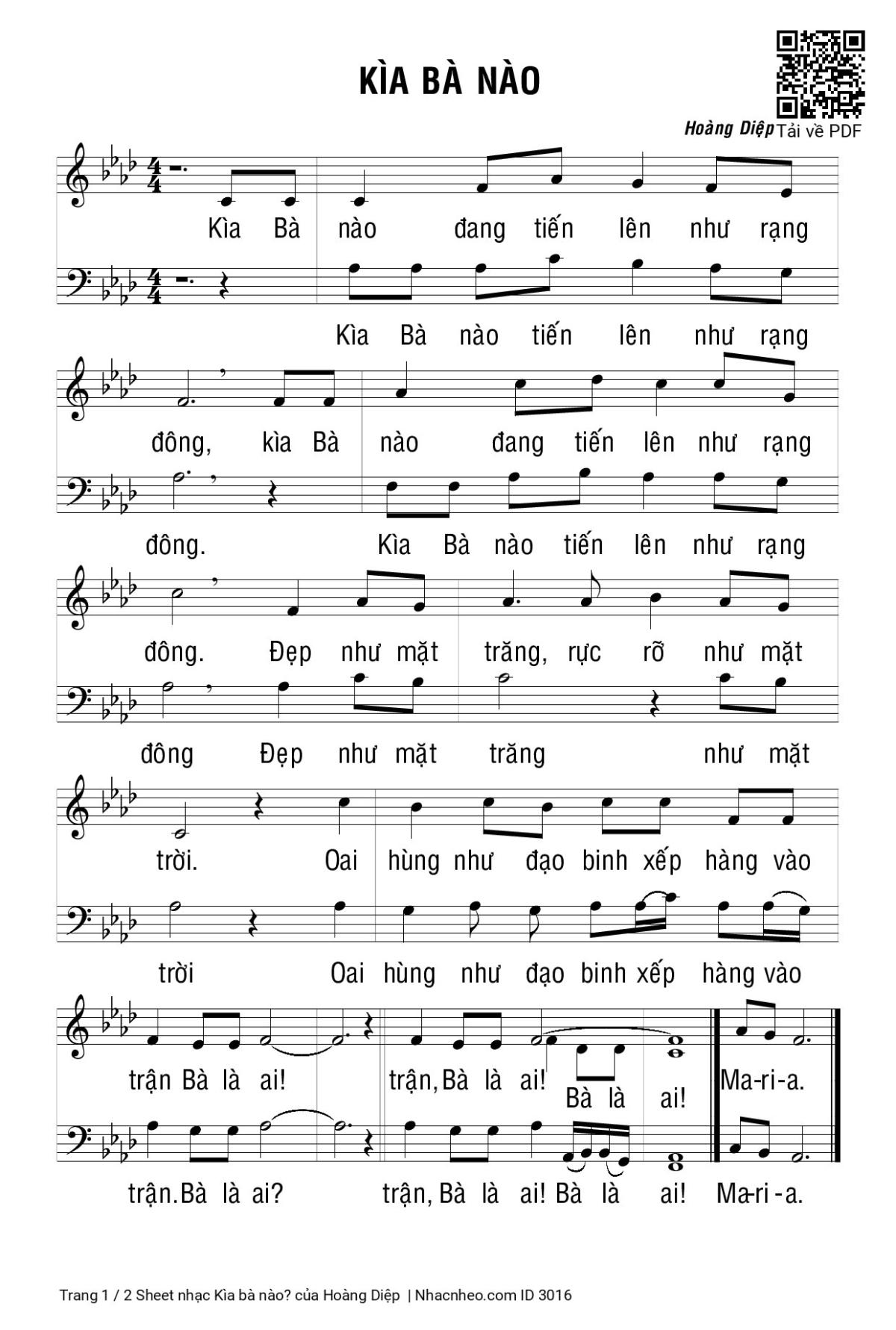 Hoàng Diệp Kìa Bà nào đang tiến lên như rạng đông [PDF] [Sheet] [Lyrics] [Mp4/Midi]